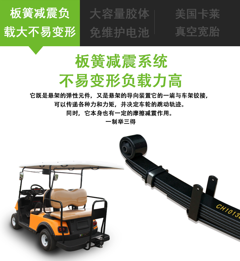 产品描述:该车底盘低,上下方便,转弯半径小,操纵灵活·并采用真空宽胎,复合式前悬架系统,减震性能优良,行驶平稳,驾乘舒适;后悬架采用钢板弹簧减震采用高回弹、高承载板簧设计,整车载重