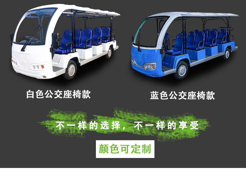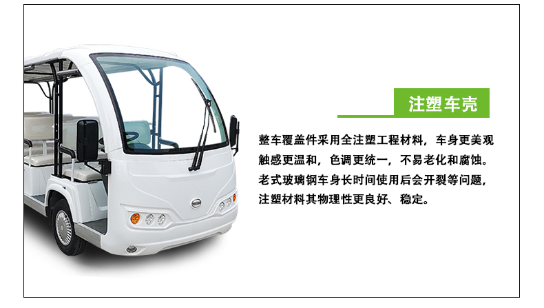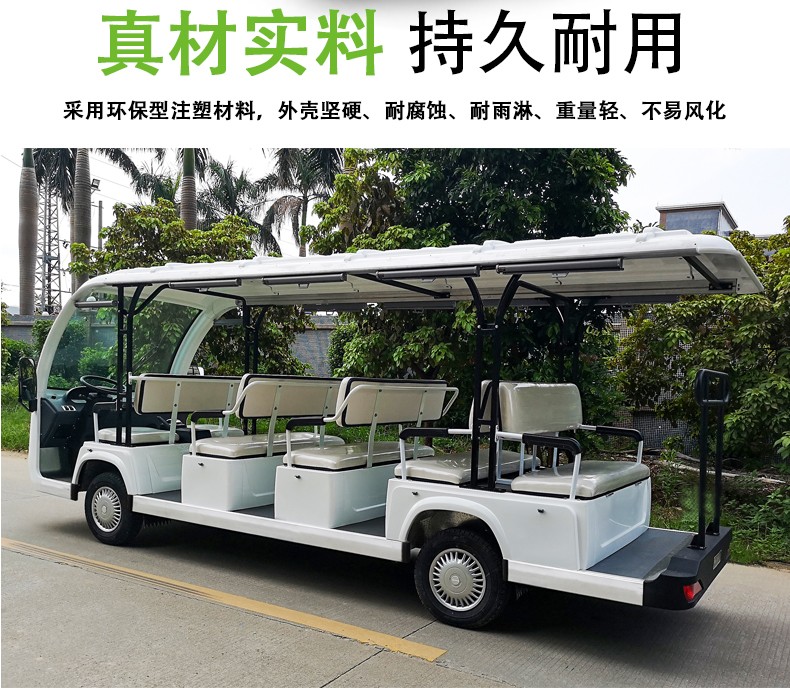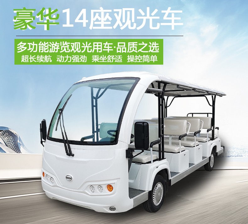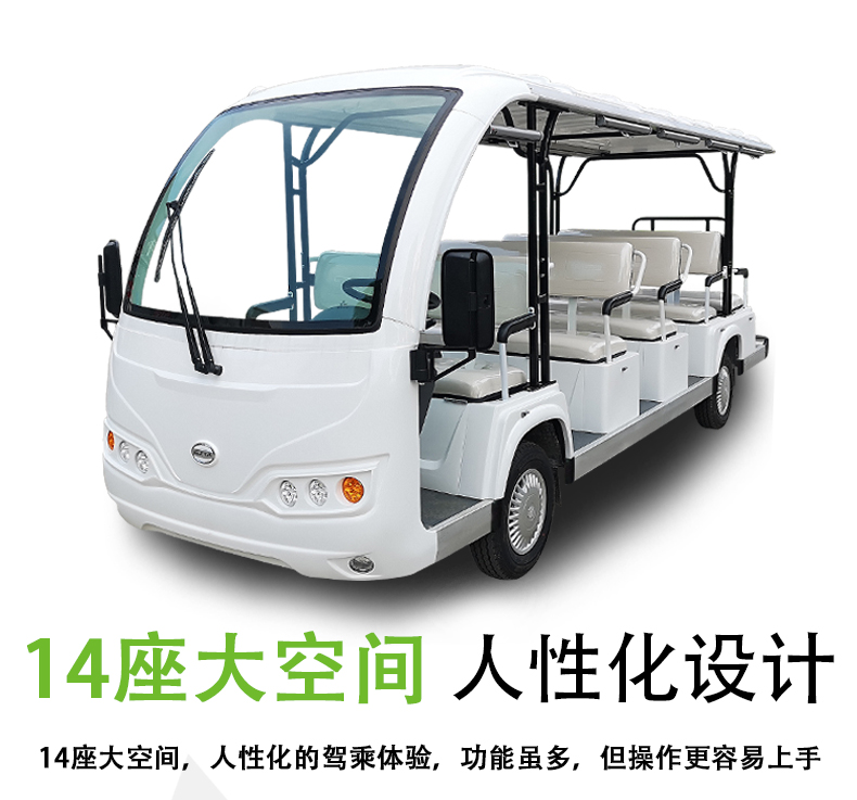 产品描述:豪华观光车定位于高端观光车市场,外观造型优雅简约,内饰设计豪华大气,将舒适的乘坐空间容纳于精巧车身。全新座椅工艺,防水防潮,坚实耐用;交流电器系统,动力更强劲,续航更持久;