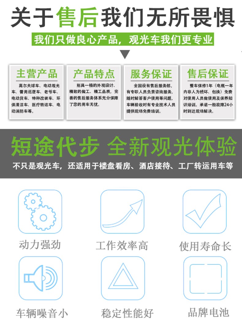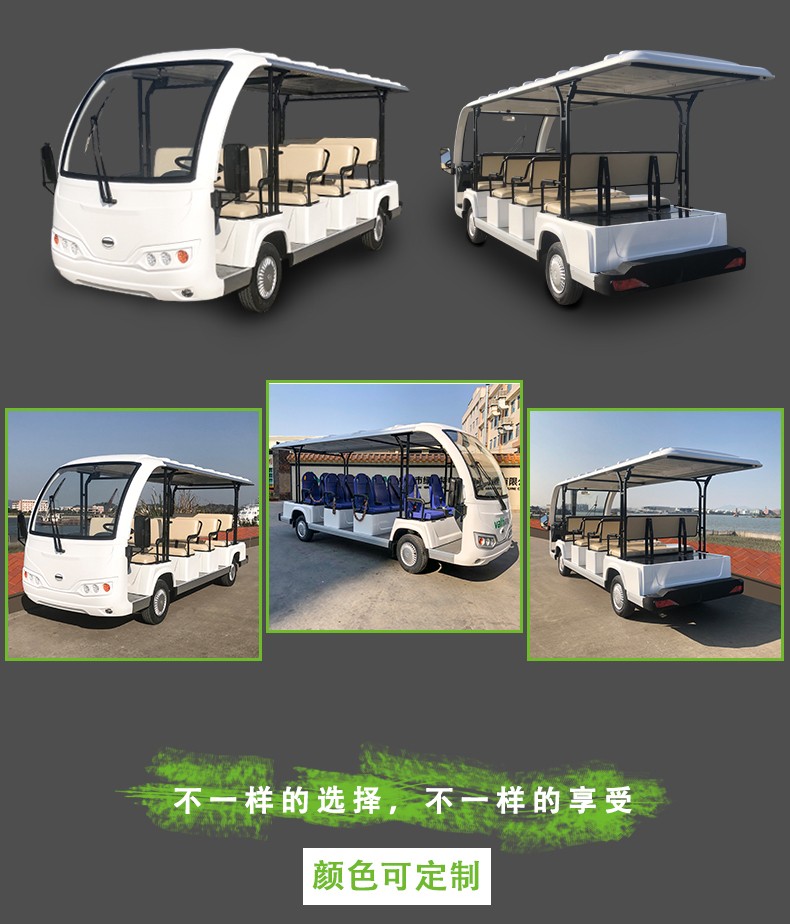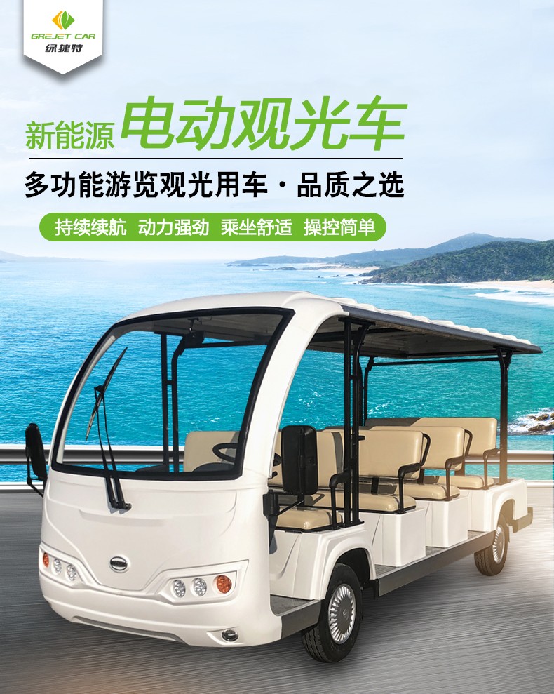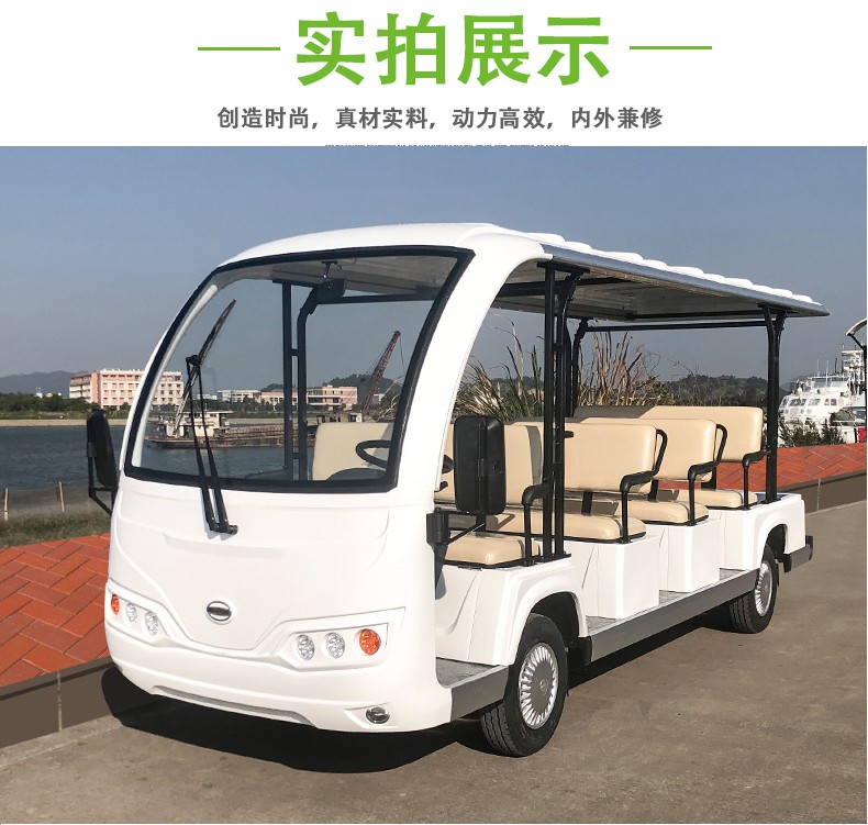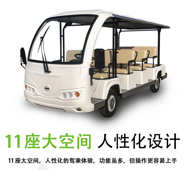 产品描述:豪华观光车定位于高端观光车市场,外观造型优雅简约,内饰设计豪华大气,将舒适的乘坐空间容纳于精巧车身。全新座椅工艺,防水防潮,坚实耐用;交流电器系统,动力更强劲,续航更持久;